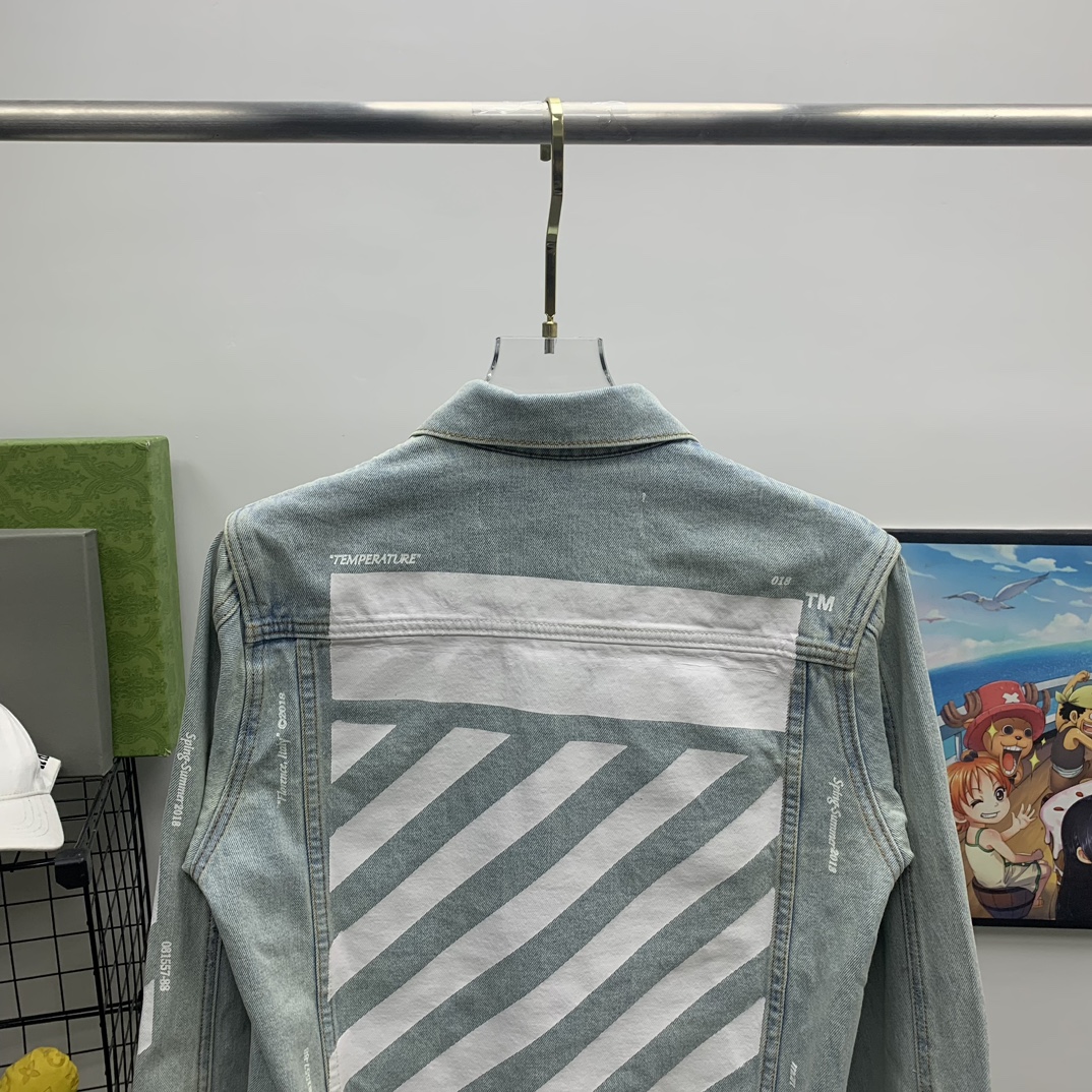 新款膠帶貼布箭頭 斑馬線OW男女情侶款牛仔衣夾克外套
