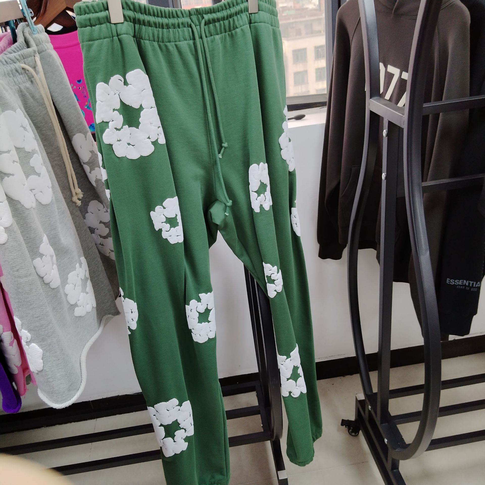 歐美潮牌跨境DENIM TEARS木棉花發泡設計印花長褲男女秋冬運動褲
