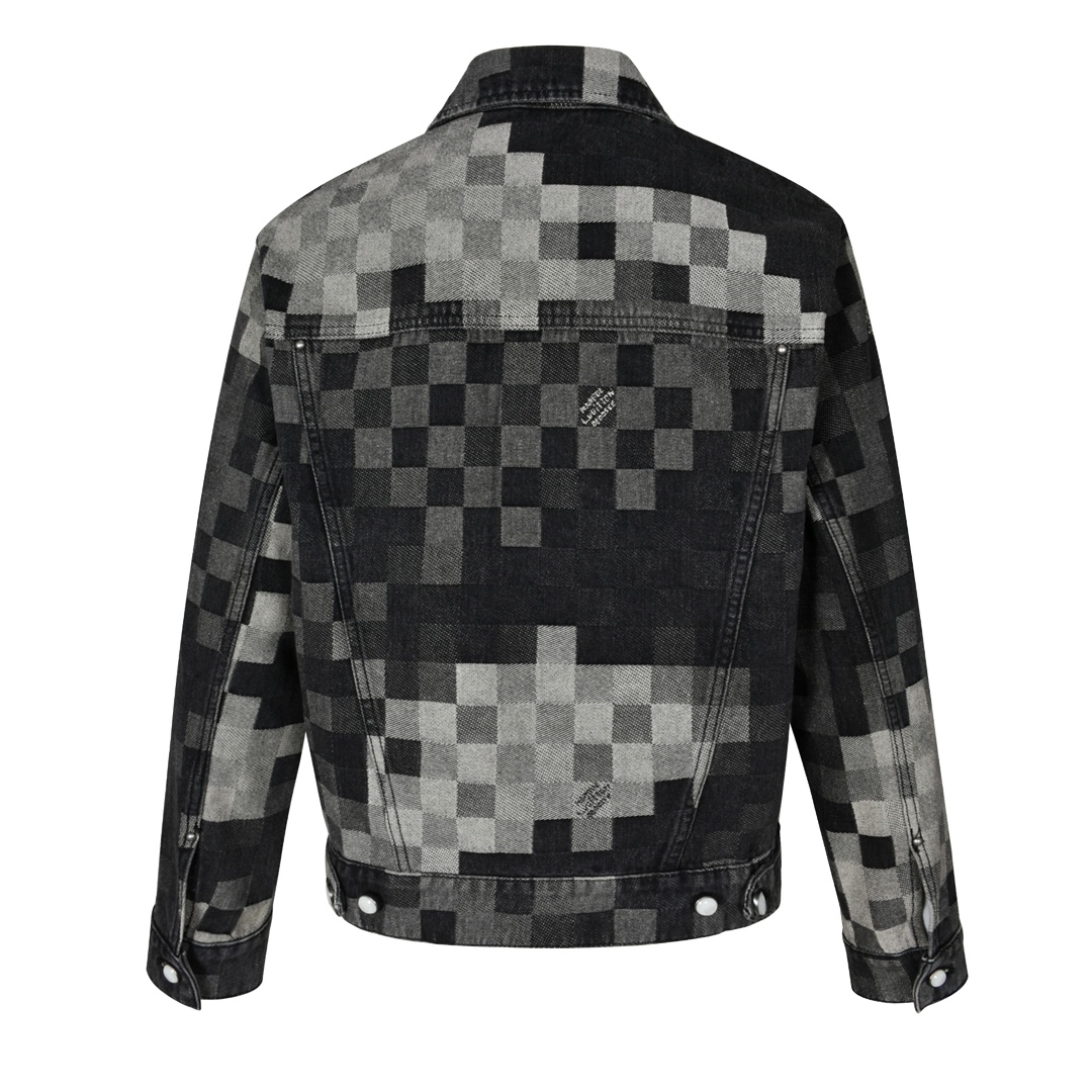 1V25ss馬賽克棋盤格牛仔外套