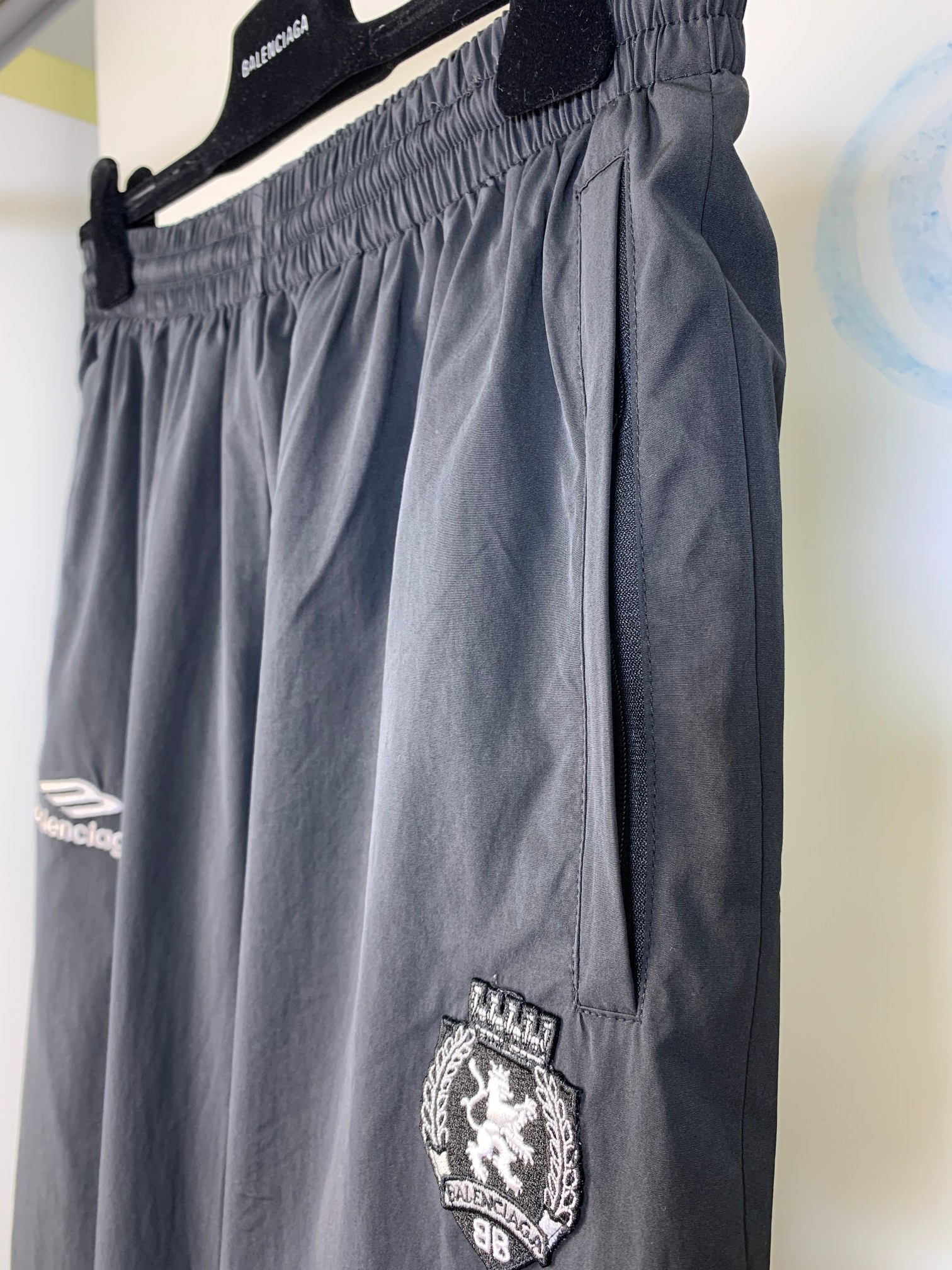 BLCG 26SS 3B刺繡足球梭織炭黑色速乾長褲
