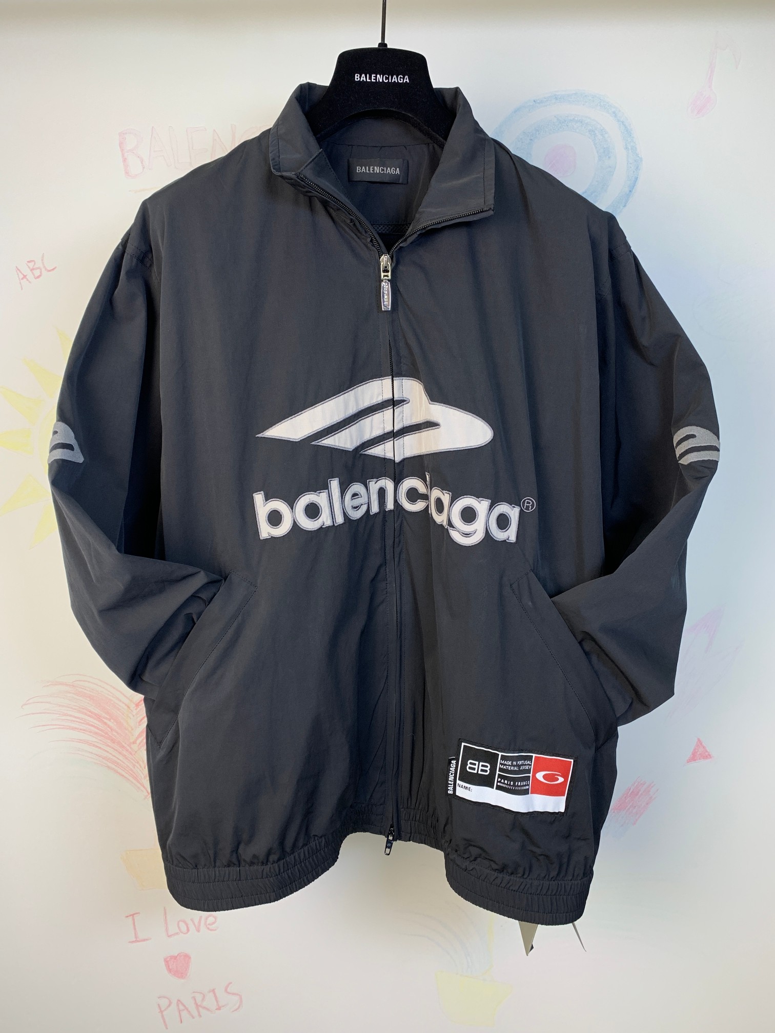 BLCG 26SS3B刺繡足球梭織夾克炭黑色速乾外套