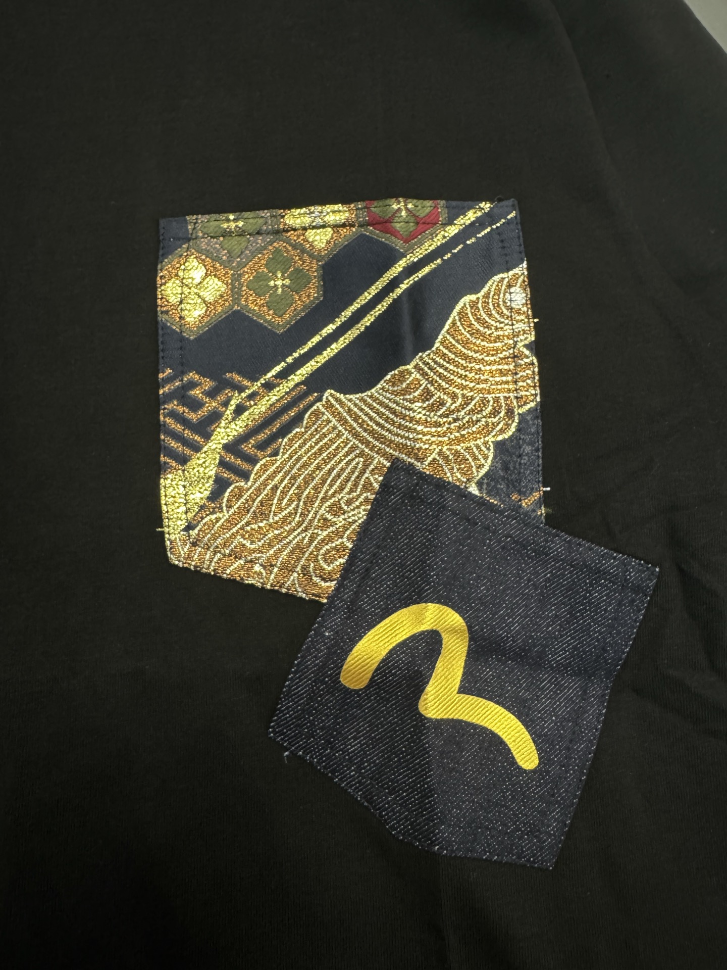 EVISU福神 男士海鷗燙金提花牛仔口袋印花T恤