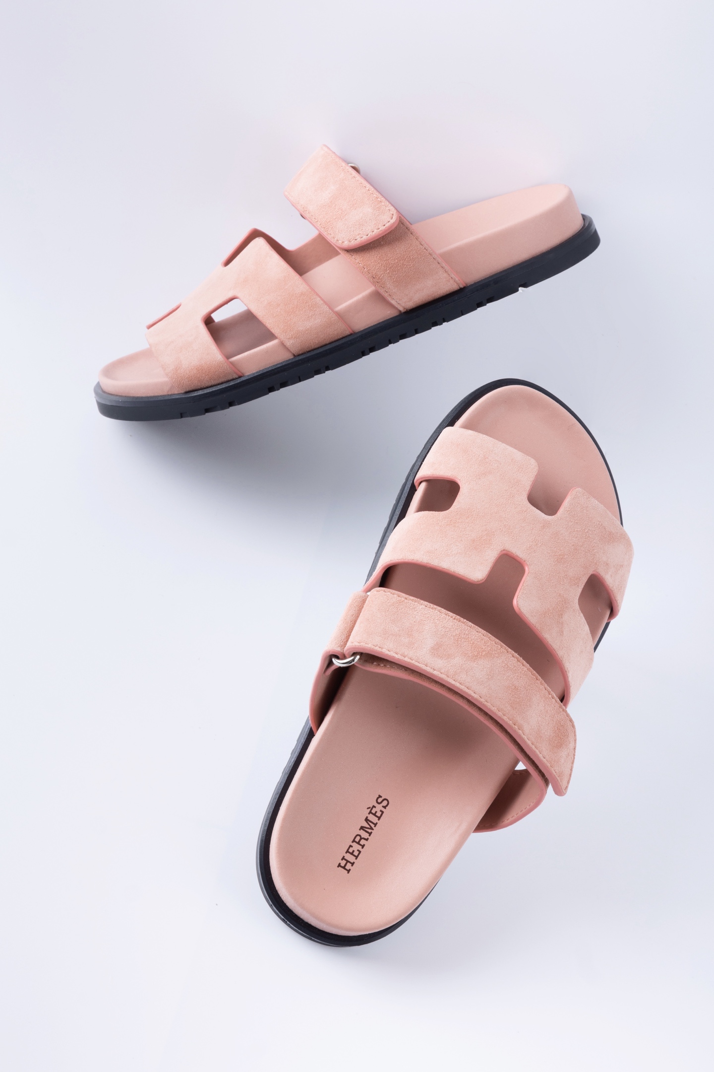 Hermes愛馬仕lzmir 二舅拖鞋H拖 桃粉絨