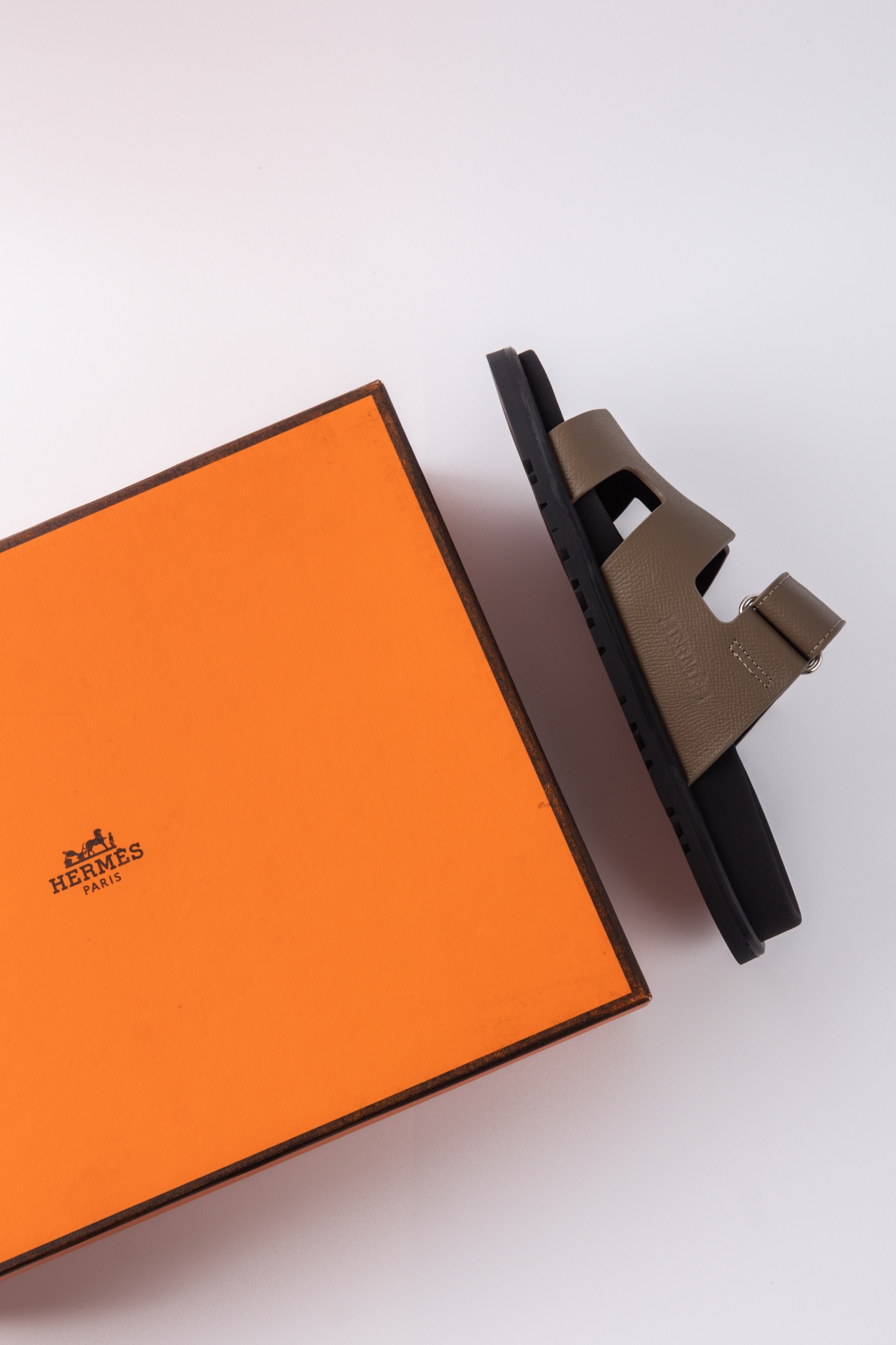 Hermes愛馬仕lzmir 二舅拖鞋H拖 棕色摔紋