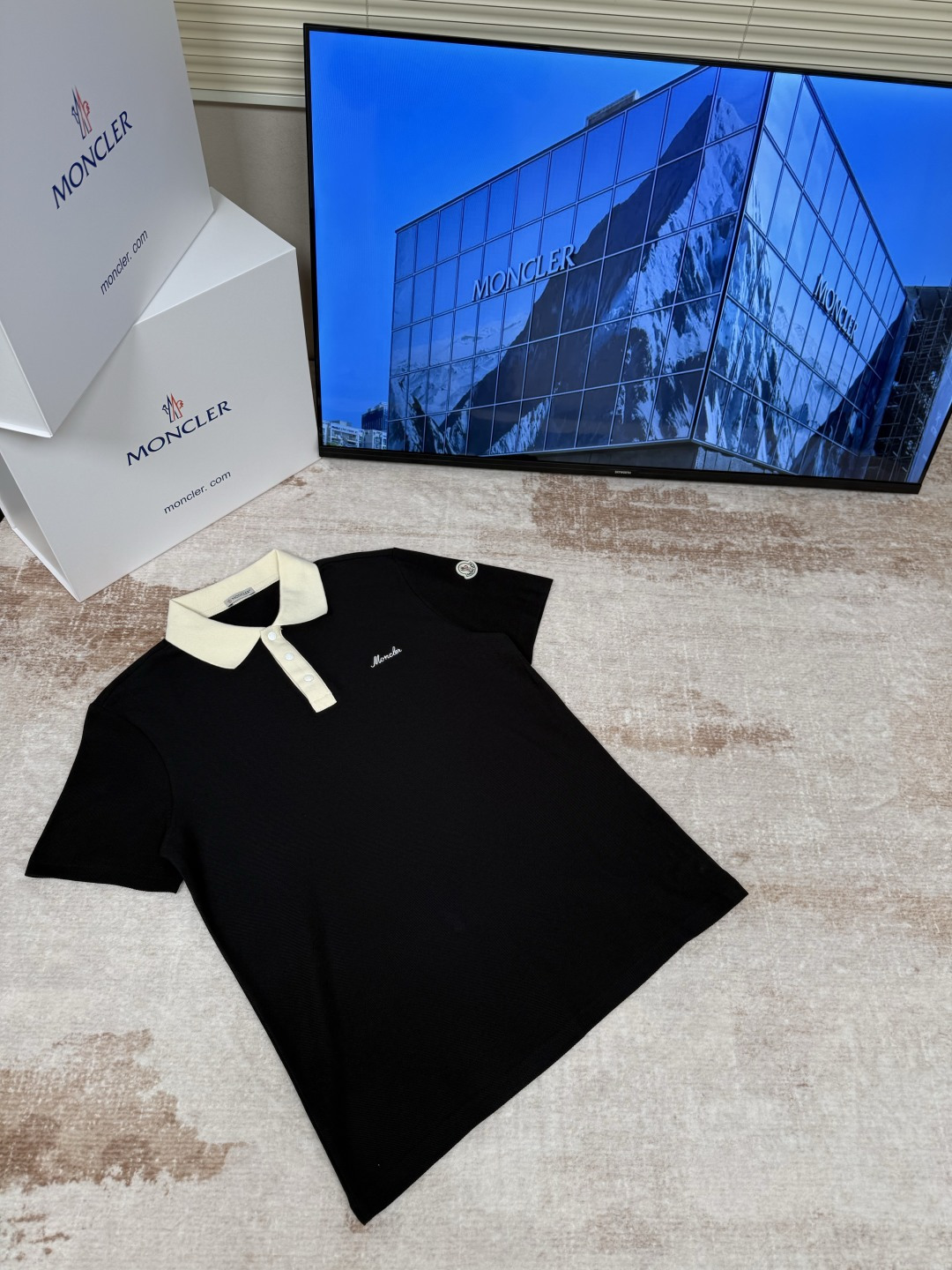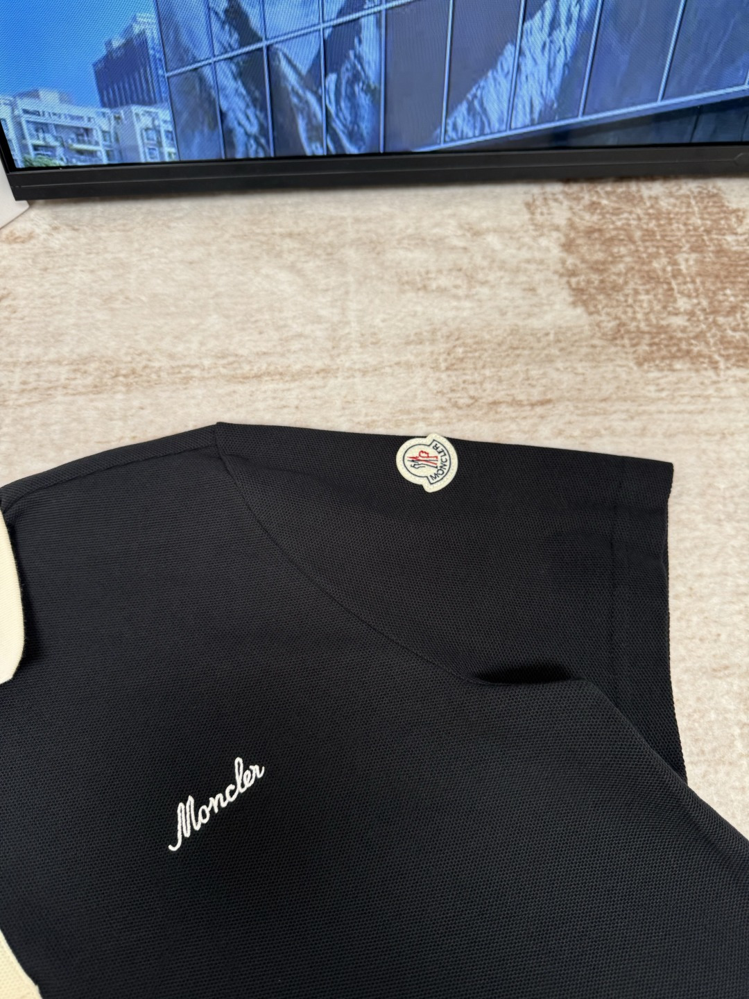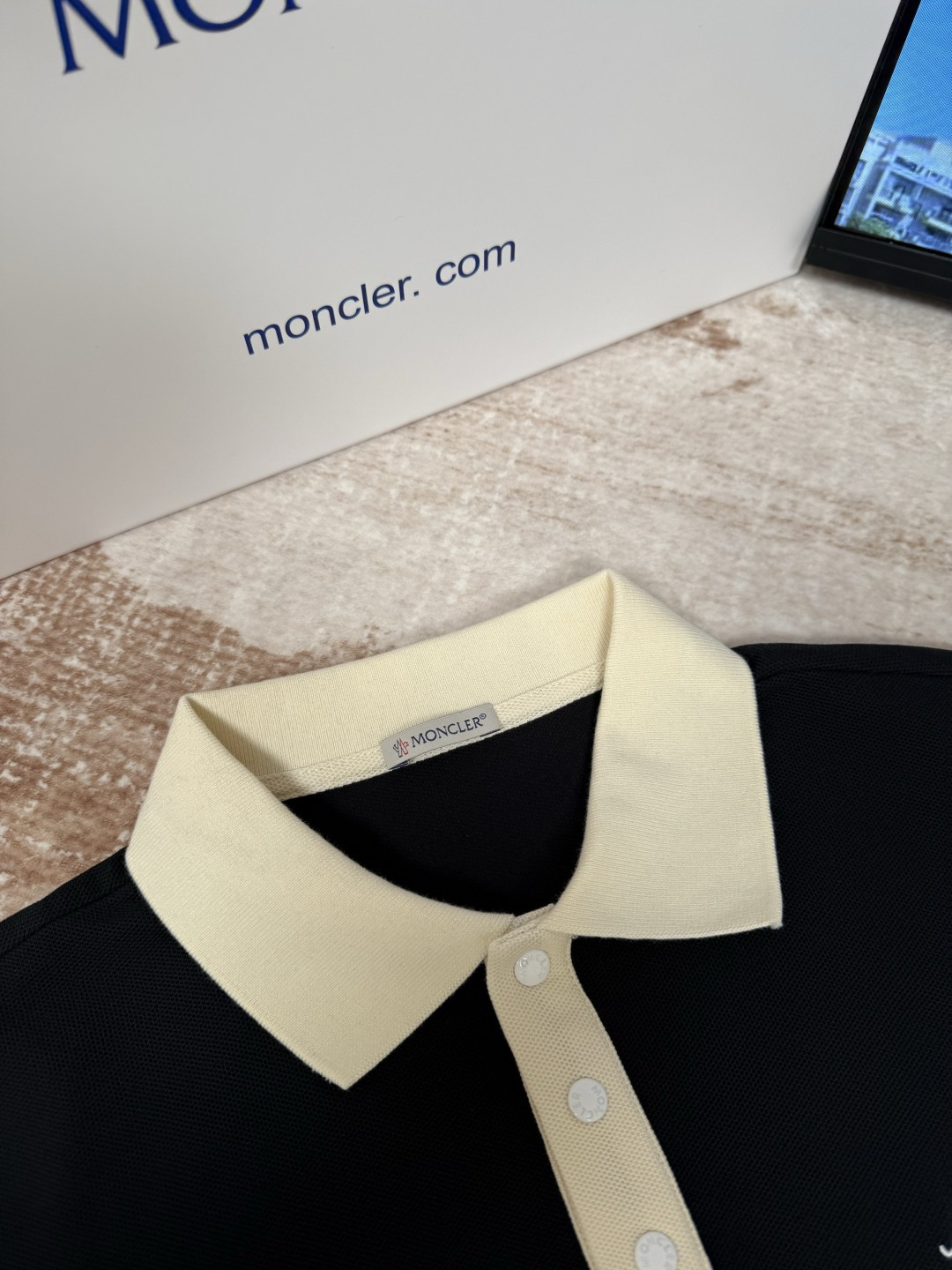 MONCLER刺繡按扣章仔撞色短袖POLO衫